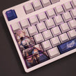 This mechanical keycaps set features various prints of Bronya Rand from the Game "Honkai" that are bound together with white and blue colouring, combined with Backlit keycaps, Bronya Rand illuminates when LEDs pass through the keycaps.