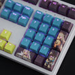 This mechanical keycaps set features various prints of Bronya Zaychik from the Game "Honkai" that are bound together with blue, green and black colouring, combined with Backlit keycaps, Bronya Zaychik illuminates when LEDs pass through the keycaps.
