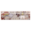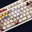 This mechanical keycaps set features various prints of Hyacine from the Game "Honkai" that are bound together with cream and orange colouring, combined with Backlit keycaps, Hyacine illuminates when LEDs pass through the keycaps.