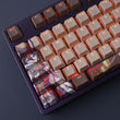 This mechanical keycaps set features various prints of Tingyun from the Game "Honkai" that are bound together with brown colouring, combined with Backlit keycaps, Tingyun illuminates when LEDs pass through the keycaps.