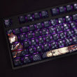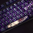 This mechanical keycaps set features various prints of Tomo Ebizuka from the anime "Girls Band Cry" that are bound together with black and blue colouring, combined with Backlit keycaps, Tomo Ebizuka illuminates when LEDs pass through the keycaps.