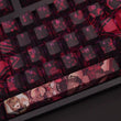 This mechanical keycaps set features various prints of Pardofelis from the Game "Honkai" that are bound together with pink and black colouring, combined with Backlit keycaps, Pardofelis illuminates when LEDs pass through the keycaps.