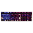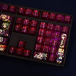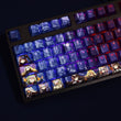 This mechanical keycaps set features various prints from the Game "Dohna Dohna: Let's Do Bad Things Together " that are bound together with blue and red colouring, combined with Backlit keycaps, the characters illuminates when LEDs pass through the keycaps.