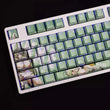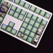 This mechanical keycaps set features various prints of Soda from the game "Nikke" that are bound together with white, green colouring, combined with Backlit keycaps, Soda illuminates when LEDs pass through the keycaps.
