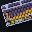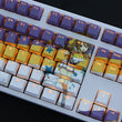 This mechanical keycaps set features various prints of Shinka Nibutani from the anime "Chunibyo" that are bound together with purple, orange and white colouring, combined with Backlit keycaps, Shinka Nibutani illuminates when LEDs pass through the keycaps.