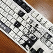 This mechanical keycaps set features various prints of Kyojuro Rengoku from the anime "Demon Slayer" that are bound together with black and white colouring.