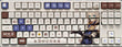 This mechanical keycaps set features various prints of Albedo from the game "Genshin Impact" that are bound together with white and purple colouring.