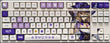 This mechanical keycaps set features various prints of Lisa from the game "Genshin Impact" that are bound together with white and purple colouring.