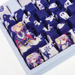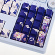 This mechanical keycaps set features various prints of Qiqi from the Game "Genshin Impact" that are bound together with dark blue and white colouring, combined with Backlit keycaps, Qiqi illuminates when LEDs pass through the keycaps.