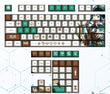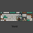 This mechanical keycaps set features various prints of Venti from the game "Genshin Impact" that are bound together with white and green colouring.