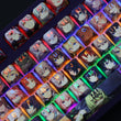 This mechanical keycaps set features various prints of female characters from the Game "Honkai", combined with Backlit keycaps, the female characters illuminate when LEDs pass through the keycaps.