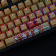 This mechanical keycaps set features various prints of Itsuki Nakano from the anime "The Quintessential Quintuplets" that are bound together with yellow colouring, combined with Backlit keycaps, Itsuki Nakano illuminates when LEDs pass through the keycaps