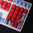 This mechanical keycaps set features various prints of Boa Hancock from the anime "One Piece" that are bound together with red and blue colouring, combined with Backlit keycaps, Boa Hancock illuminates when LEDs pass through the keycaps.