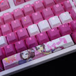 This mechanical keycaps set features various prints of Special Week from the anime "Pretty Derby" that are bound together with pink and white colouring, combined with Backlit keycaps, Special Week illuminates when LEDs pass through the keycaps.