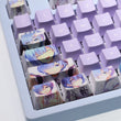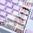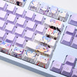 This mechanical keycaps set features various prints of Rem from the anime "Re:Zero" that are bound together with purple colouring.