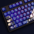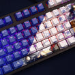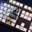 This mechanical keycaps set features various prints of Kamome Kushima from the anime "Summer Pockets" that are bound together with blue and white colouring, combined with Backlit keycaps, Kamome Kushima illuminates when LEDs pass through the keycaps.