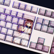 This mechanical keycaps set features various prints of Umi Katou from the anime "Summer Pockets" that are bound together with rainbow colouring, combined with Backlit keycaps, Umi Katou illuminates when LEDs pass through the keycaps.