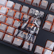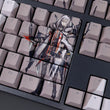 This mechanical keycaps set features various prints of FrostNova from the mobile game "Arknights" that are bound together with grey and brown colouring, combined with Backlit keycaps, FrostNova illuminates when LEDs pass through the keycaps.