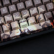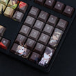 This mechanical keycaps set features various prints of Penance from the mobile game "Arknights" that are bound together with brown and yellow colouring.