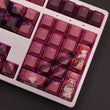 This mechanical keycaps set features various prints of Shamare from the mobile game "Arknights" that are bound together with pink and brown colouring, combined with Backlit keycaps, Shamare illuminates when LEDs pass through the keycaps.