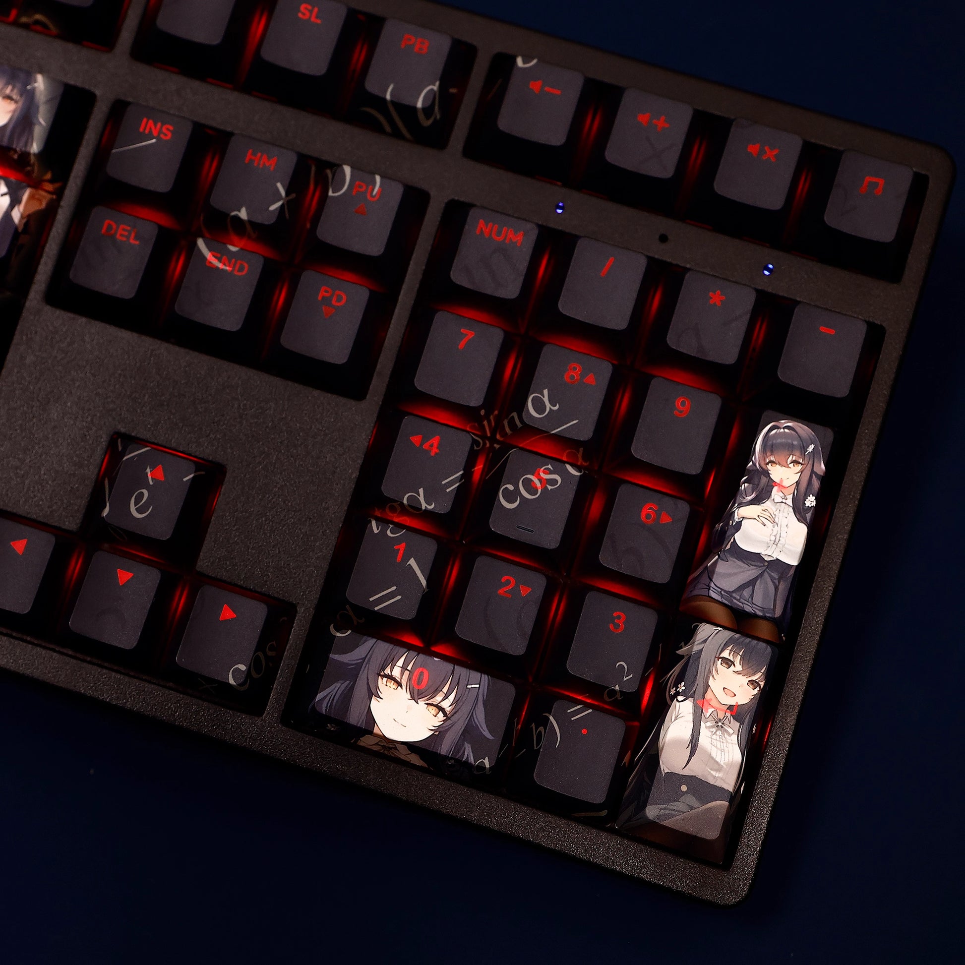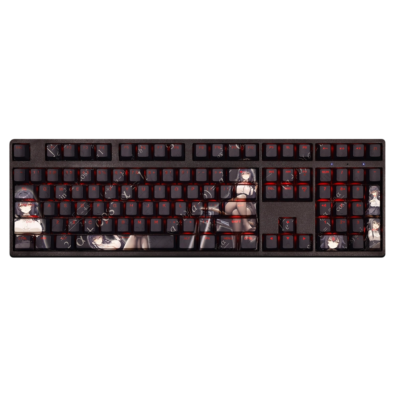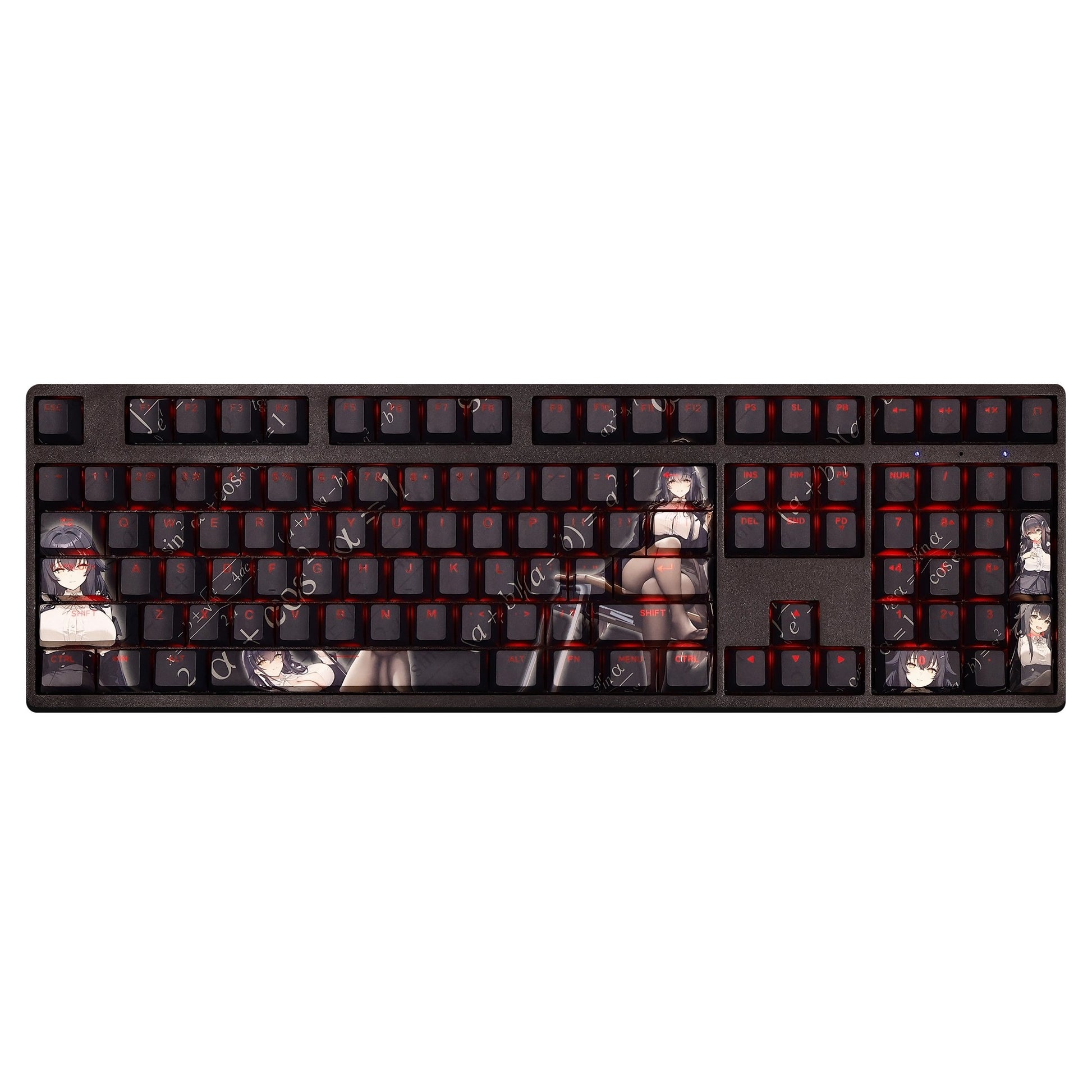 This mechanical keycaps set features various prints of Azuma from the Game "Azur Lane" that are bound together with black, combined with Backlit keycaps, Azuma illuminates when LEDs pass through the keycaps.