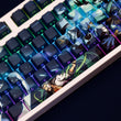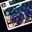 This mechanical keycaps set features various prints of Grimmjow Jaegerjaquez from the anime "Bleach" that are bound together with blue colouring, combined with Backlit keycaps, Grimmjow Jaegerjaquez illuminates when LEDs pass through the keycaps.