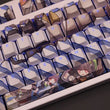 This mechanical keycaps set features various prints of Kasumizawa Miyu from the game "Blue Archive" that are bound together with blue, white and brown colouring, combined with Backlit keycaps, Kasumizawa Miyu illuminates when LEDs pass through the keycaps.