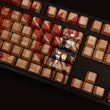 This mechanical keycaps set features various prints of Megu from the game "Blue Archive" that are bound together with brown and red colouring, combined with Backlit keycaps, Megu illuminates when LEDs pass through the keycaps.