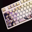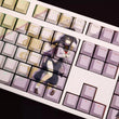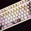 This mechanical keycaps set features various prints of Ono Tsukuyo from the game "Blue Archive" that are bound together with pink yellow and white colouring, combined with Backlit keycaps, Ono Tsukuyo illuminates when LEDs pass through the keycaps.
