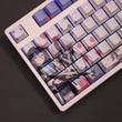 This mechanical keycaps set features various prints of Tendou Alice from the game "Blue Archive" that are bound together with white, pink and blue colouring, combined with Backlit keycaps, Tendou Alice illuminates when LEDs pass through the keycaps.