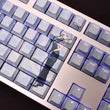 This mechanical keycaps set features various prints of Yuyuzuki Ako from the game "Blue Archive" that are bound together with light blue, combined with Backlit keycaps, Yuyuzuki Ako illuminates when LEDs pass through the keycaps.