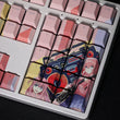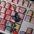 This mechanical keycaps set various prints of Hitori Goto from the Anime "Bocchi The Rock!" that are bound together with pink and yellow colouring, combined with Backlit keycaps, Hitori Goto illuminates when LEDs pass through the keycaps.