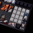 This mechanical keycaps set features various prints of Aki Hayakawa from the mobile game "Chainsaw Man" that are bound together with black, grey and orange colouring, combined with Backlit keycaps, Aki Hayakawa illuminates when LEDs pass through the keycaps.