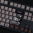 This mechanical keycaps set features various prints of characters from the anime "Danganronpa" that are bound together with black, white and red colouring.