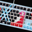 This mechanical keycaps set features various prints of Zero Two from the anime "DARLING in the FRANXX" that are bound together with black, red and blue colouring, combined with Backlit keycaps, Zero Two illuminates when LEDs pass through the keycaps.