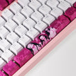 This mechanical keycaps set features various prints of Nezuko Kamado from the anime "Demon Slayer" that are bound together with white and pink colouring, combined with Backlit keycaps, Nezuko Kamado illuminates when LEDs pass through the keycaps.