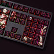 This mechanical keycaps set features various prints of Nezuko Kamado from the anime "Demon Slayer" that are bound together with red, black and purple colouring, combined with Backlit keycaps, Nezuko Kamado illuminates when LEDs pass through the keycaps.