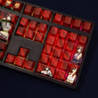 This mechanical keycaps set features various prints of Erza Scarlet from the anime "Fairy Tail" that are bound together with white, red colouring, combined with Backlit keycaps, Erza Scarlet illuminates when LEDs pass through the keycaps.