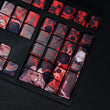 This mechanical keycaps set features various prints of Sakura Matou from the mobile game "Fate" that are bound together with black and red colouring.