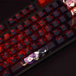 This mechanical keycaps set features various prints of Aura from the anime "Frieren" that are bound together with Red and Black colouring, combined with Backlit keycaps, Aura illuminates when LEDs pass through the keycaps.