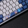 This mechanical keycaps set features various prints of Ganyu from the game "Genshin Impact" that are bound together with dark blue and white colouring.