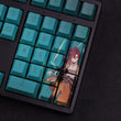 This mechanical keycaps set features various prints of Shikanoin Heizou from the game "Genshin Impact" that are bound together with blue colouring.