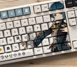 This mechanical keycaps set features various prints of Xingqiu from the game "Genshin Impact" that are bound together with white and light blue colouring.