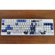 This mechanical keycaps set features various prints of Yelan from the game "Genshin Impact" that are bound together with white and blue colouring.