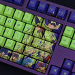 This mechanical keycaps set features various prints of Seiya from the anime "Knights of the Zodiac" that are bound together with green and purple colouring.