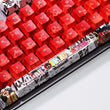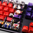 This mechanical keycaps set features various prints of characters from the anime "One Piece" that are bound together with red, white and purple colouring.