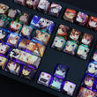 This mechanical keycaps set features various prints of characters from the Mobile Game "Warship Girls", combined with Backlit keycaps, the characters illuminate when LEDs pass through the keycaps.