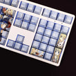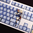 This mechanical keycaps set features various prints of Kaori Miyazono from the manga "Your Lie in April" that are bound together with blue colouring, combined with Backlit keycaps, Kaori Miyazono illuminates when LEDs pass through the keycaps.
